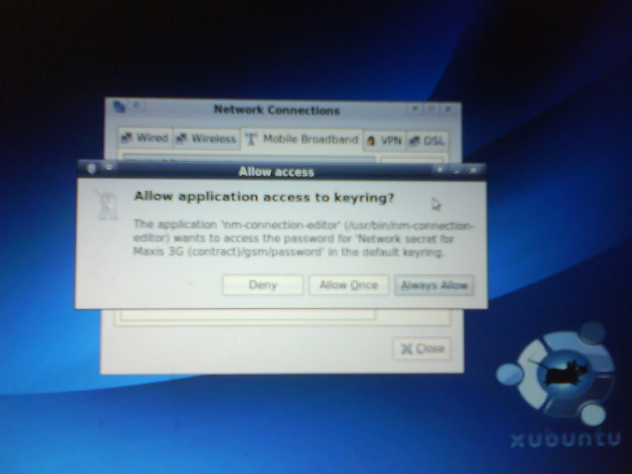 press edit… and answer allow the keyring thing..