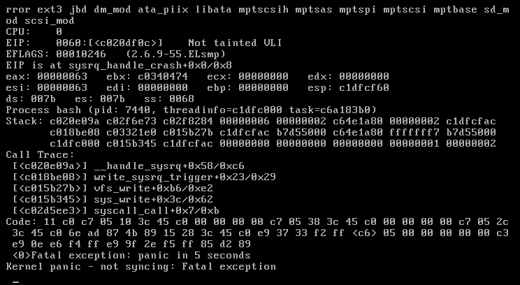 echo ‘c’ > /proc/sysrq-trigger